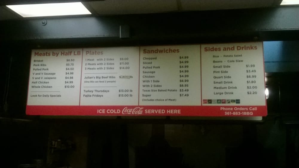 Julian's BBQ offers a delightful combination of flavor, tenderness, and a distinct smoky taste that keeps customers coming back for more. Located in Corpus Christi, Texas, this casual yet classy establishment provides a range of barbecue options that cater to all tastes. From brisket and sausage to chicken and chopped beef, their dishes are reminiscent of homemade comfort food. Customers rave about the friendly service, diverse menu offerings, and old-school sides that complement the main dishes perfectly. Whether you're dining in or taking out, Julian's BBQ ensures a satisfying and memorable experience. Don't miss out on their Happy Hour specials and expertly crafted cocktails that perfectly accompany their delectable BBQ offerings. It's no wonder Julian's BBQ has become a go-to spot for residents and visitors alike seeking authentic and flavorful BBQ in Corpus Christi.